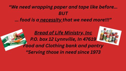 #foodbank #foodpantry #clothingbank #clothingpantry #toys #freetothoseinneed #helpushelpothers #tristatearea #lynnville #Indiana